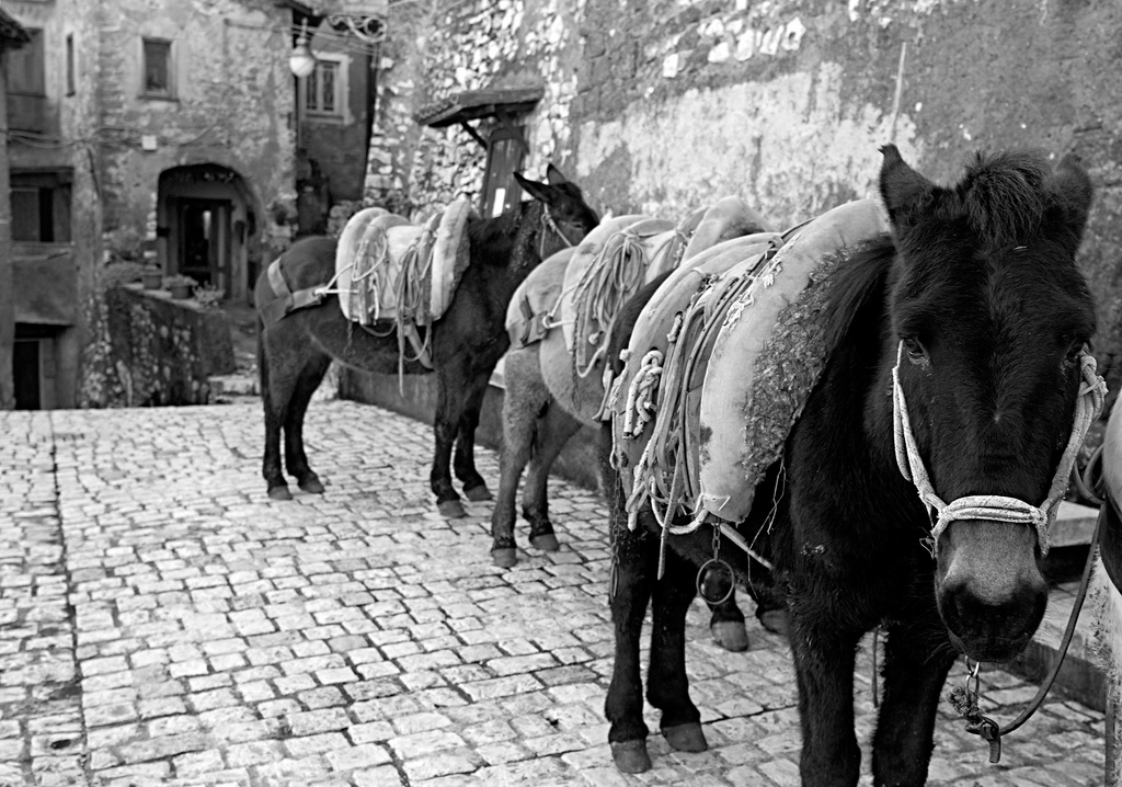 L’uso dei quadrupedi: muli, asini, cavalli restò sempre valido ed efficiente, soprattutto per il traino dei carri adibiti al trasporto di merci. Ma il mezzo, per eccellenza, di trasporto, beninteso per brevi distanze, rimaneva pur sempre l’uomo, nella sua accezione più ampia. C’era a quei tempi, un uomo umile ma molto robusto, che trasportava pesi eccezionali, sulle spalle. Il suo nome era: “Totonno e’ Cesare”. Il quale dietro compenso di una “palommella” (cinque lire) scaricava un autocarro intero. Anche molte donne, come ho avuto modo di dire in altre pagine, si prestavano a quegli umili servizi, dietro compenso di un tozzo di pane, una manciata di fichi secchi, un po’ di olio di oliva… .