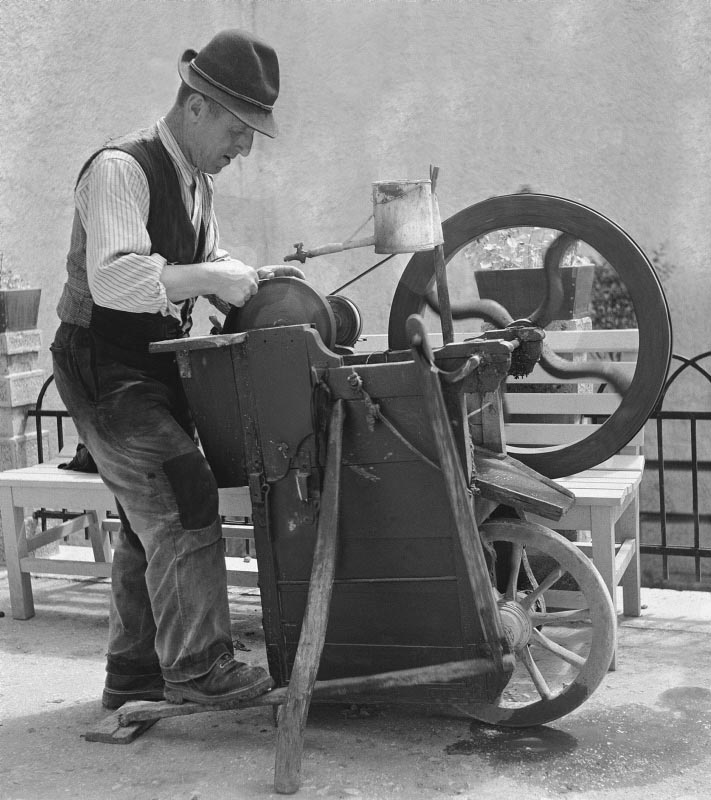 Verso la primavera immigravano poi gli zingari. Uomini e donne girovaghi, apolidi che si dedicavano gli uni al mestiere di stagnino con improvvisate fucine, soffietti per alimentare il fuoco e piccole incudini; le altre, alla elttura della mano e qualche volta all’attività cleptomane. Gli arrotini e gli ombrellai, che completavano quelle attività secondarie o di arrangiamento, pur se le esigenze lo richiedevano perché un ombrello o coltelli o forbici dovevano esaurirsi e poi gettati via, non mancavano mai in quella costellazione di attività, che diluivano nel tempo, l’adorata di quegli strumenti o utensili.