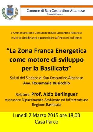 Si terrà a San Costantino Albanese lunedì 2 marzo alle ore 18,00, presso la sala conferenze della Casa Parco, il convegno “La Zona Franca Energetica come motore di sviluppo per la Basilicata”. Dopo i saluti del Sindaco di San Costantino Albanese, Avv. Rosamaria Busicchio, relazionerà sull’argomento il prof. Aldo Berlinguer, Assessore all’Ambiente e alle Infrastrutture della Regione Basilicata. Un modello quello della Zona Franca Energetica portata avanti dalla Regione che punta ad una fiscalità differenziata in un territorio che produce la maggior parte del petrolio italiano. La tassazione sui prodotti energetici in Basilicata attualmente è uguale a quella ad altre Regioni e necessita pertanto attuare una riduzione della tassazione in misura percentuale al valore delle accise sui prodotti energetici così come avviene in altre parti d’Europa, per promuovere un nuovo modello di sviluppo.