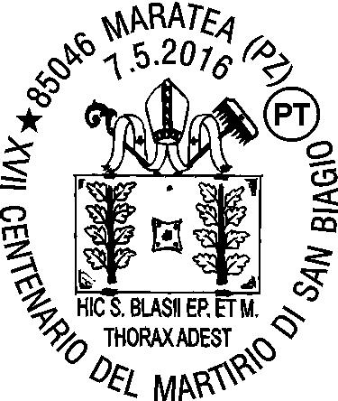 MARATEA – In occasione del XVII Centenario del martirio di San Biagio, patrono di Maratea, città dove vengono custodite le reliquie del Santo proveniente dall’Armenia e venerato dalla Chiesa cattolica e da quella Ortodossa, Poste Italiane ha predisposto per sabato 7 maggio, su richiesta della parrocchia Santa Maria Maggiore, uno speciale annullo filatelico celebrativo.