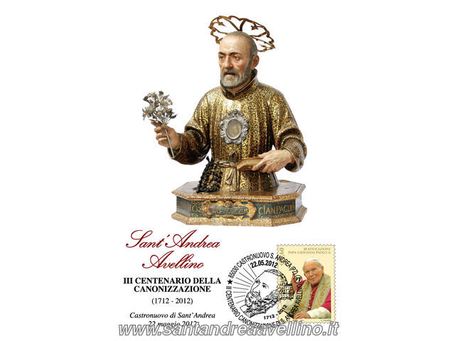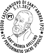 Per celebrare la IV Peregrinatio delle sacre spoglie di Sant’Andrea Avellino da Napoli al Paese natale del Santo, Poste Italiane ha predisposto per sabato 5 novembre, su richiesta del Comune di Castronuovo di Sant’Andrea, uno speciale annullo filatelico.