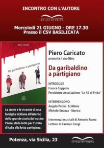 di Frida: presentazione del romanzo storico di Piero Caricato “Da garibaldino a partigiano” mercoledì 21 giugno presso il CSV Basilicata in Via Sicilia 23 a Potenza.
