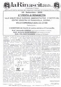 Da molti anni ho notato con molta amarezza sia a Francavilla che in tutti i paesi del circondario, accanto all’effimero, non si svolgono più manifestazioni politiche e mi riferisco alle famose feste dei partiti.