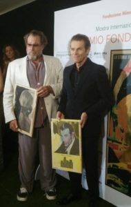 La Fondazione Mimmo Rotella, nella persona di Aghnessa Rotella, figlia di Rotella e Presidente della Fondazione a lui dedicata, insieme al Direttore Artistico del premio, Gianvito Casadonte, hanno assegnato come ogni anno il prestigioso riconoscimento al regista Julian Schnabel e a Willem Dafoe rispettivamente regista ed interprete del bellissimo film in concorso alla 75 Mostra di Venezia dedicato alle vicende umane ed artistiche di VAN GOGH; titolo del film At Eternity’s Gate. Felicissimi dell’ambito riconoscimento i due protagonisti dell’opera ricevuta, realizzata dal Maestro del décollage, e che è inserito tra gli eventi collaterali della Mostra Internazionale del Cinema di Venezia ed assegnata ad un personaggio che, nel corso della carriera, si è distinto come grande artista, lasciando un segno indelebile del proprio percorso, così come Rotella con la sua arte. Cornice migliore non poteva esserci al mondo: il museo Guggenheim che sul Canal Grande trasuda di ogni forma d’arte e che i due Premiati hanno lungamente visitato ed apprezzato.