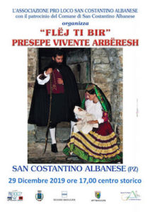 L’Associazione Pro Loco San Costantino Albanese, con il patrocinio del Comune di San Costantino Albanese e il sostegno dell’APT Basilicata, della Regione Basilicata e del GAL La Cittadella del Sapere, presenta “Flëj ti Bir”, il Presepe Vivente Arbëresh.