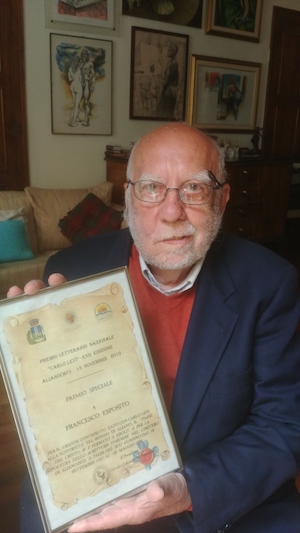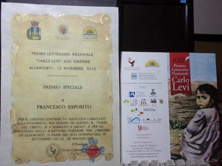 Anch’egli, come gli altri, premiato in PaD, ci fa giungere la sua testimonianza fotografica del Premio ricevuto. Se la Premiazione della XXII edizione del Premio Letterario Nazionale “Carlo Levi”, si fosse tenuta in presenza, Franco Esposito avrebbe voluto condividere la sua collaborazione e relazione di amicizia con il maestro Carlo Levi.
