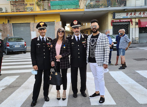 E’ seguita la fase di scoprimento della targa della strada con la benedizione a opera dell’ Arcivescovo di Salerno, Andrea Bellandi ad opera delle Vedove Arena e Pezzuto e del figlio di Pezzuto Alessio, Orfano dell’ Arma dei Carabinieri. Un momento di grande partecipazione e di commozione accompagnato in tutte le fasi dalle musiche della Fanfara Carabinieri di Napoli.