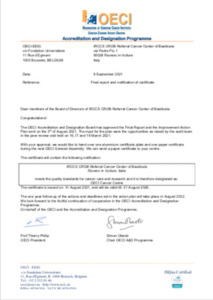 Per l’Irccs Crob la riconferma, dal primo ingresso nella famiglia Oeci del 2015, è un riconoscimento di straordinaria importanza che evidenzia il rispetto di tutti i requisiti di qualità e di attenzione al paziente oncologico e l’aderenza a parametri ogni anno più stringenti e vincolanti, richiesti nello svolgimento delle attività cliniche, di assistenza e di ricerca.