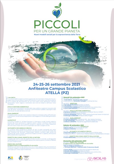 Promossa dalla società A.M.A. S.R.L. e dal Comune di Atella, con la collaborazione organizzativa di BroxLab, la tre giorni si propone di portare al vaglio di istituzioni e cittadini l’impellente problema della salvaguardia ambientale, della gestione delle risorse, della tutela del pianeta, della educazione e il rispetto che deve partire proprio dalle nuove generazioni.
