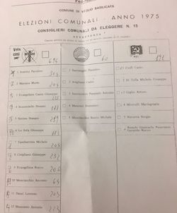 Così scriveva Mario Trufelli nel 1975 nella brochure della Pro Loco di Vaglio di cui Faustino Somma fù promotore e primo presidente. Nelle elezioni comunali del 1975 la lista della DC a Vaglio raccolse 694 voti pari al 76%, quella del PCI 191 voti pari al 20% ed una lista socialdemocratica 60 voti pari al 4%, tanto da essere definito “il paese più democristiano“.