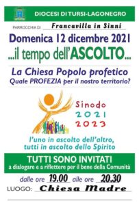 Domenica 12 dicembre, come da locandina, riprende il lavoro sinodale in tutta la diocesi di Tursi.