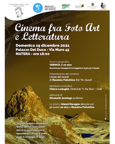 La iniziativa culturale del “De Sica” in connubio con il Matiff- Matera Art International Film Festival, e supportata dal Montecatini Shorts Film Festival, da Cineclub Pasolini, ospite fino all’8 gennaio 2022 della mirabile cornice dell’Hotel Palazzo del Duca.
