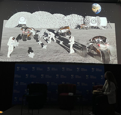 La dottoressa Scattaglia ha poi evidenziato come la regolite, materiale di cui la superficie lunare è ricoperta, da potenziale ostacolo può invece costituire un’opportunità se utilizzata come materiale di costruzione in situ. Esattamente come accaduto agli albori della città di Matera, costruita per sottrazione, senza aggiungere materiali eterogenei al territorio. Un insediamento sul bordo del cratere lunare Shackleton, scelto per la presenza sul suo fondo di ghiaccio: «Un aspetto fondamentale, per poter ricavare acqua e ossigeno», evidenzia Scattaglia.
