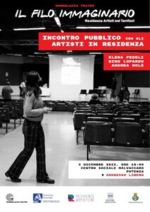 POTENZA – Entra nel vivo “Il filo immaginario”, il progetto di residenza ministeriale triennale della compagnia Gommalacca Teatro, vincitore del bando “Artisti nei territori” della Regione Basilicata. Sabato 3 dicembre 2022, alle ore 18, presso l’auditorium del Centro Sociale di Malvaccaro a Potenza, si svolgerà un incontro pubblico di presentazione alla comunità degli artisti in residenza protagonisti della prima annualità del programma di residenze artistiche: Elena Fedeli, Dino Lopardo e Andrea Nolè.