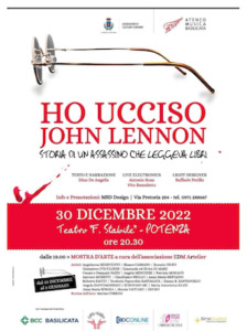 “Ho ucciso John Lennon, storia di un assassino che leggeva libri” di e con Dino De Angelis, a cura di Ateneo Musica Basilicata ed Assessorato Cultura e Turismo del Comune di Potenza, con il sostegno del Fondo Etico BCC Basilicata, DocOnline – Allestimenti e soluzioni Multimediali, Sirio Studios Visual Art & Cinetourism, EDM Atelier Potenza, MSD Design Potenza.