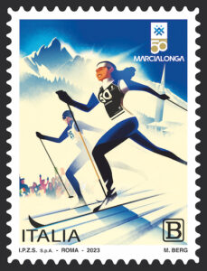 Poste Italiane comunica che oggi 29 gennaio 2023 viene emesso dal Ministero delle Imprese e del Made in Italy un francobollo ordinario appartenente alla serie tematica “lo Sport”, dedicato alla Marcialonga, nel 50° anniversario, relativo al valore della tariffa B pari a 1,20€.