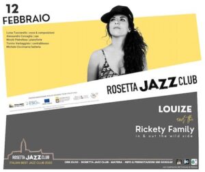 Domenica 12 febbraio la band pugliese Louize and the Rickety Family sarà ospite a Matera del Rosetta Jazz Band, per una serata che si preannuncia interessante non solo per gli appassionati del Jazz. In un percorso tra musica scritta e improvvisata, il sound di questo ensemble ricerca la fusione tra i suoni moderni della black music con alcuni aspetti dell’idioma jazzistico, con spunti compositivi di varia natura.
