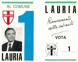 Lauria aveva svolto in precedenza l’incarico di consigliere provinciale dal 1970 al 1985, assumendo di volta in volta la carica di assessore, di capo gruppo della Dc, e infine di Presidente dell’amministrazione provinciale nel biennio 1984/1985.