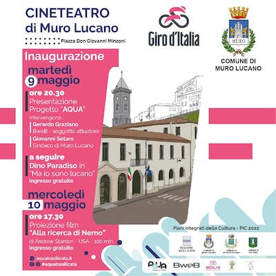 Martedì 9 e mercoledì 10 maggio a Muro Lucano due importanti eventi legati al progetto che metteranno al centro la risorsa acqua e le bellezze paesaggistiche del territorio. Il giorno 9, per festeggiare il passaggio del Giro d’Italia, all’interno del nuovo Cineteatro comunale, inaugurato per l’occasione, alle ore 20:30, si terrà la presentazione del progetto con gli interventi del sindaco Giovanni Setaro e di Gerardo Graziano della BweB, soggetto attuatore del progetto.