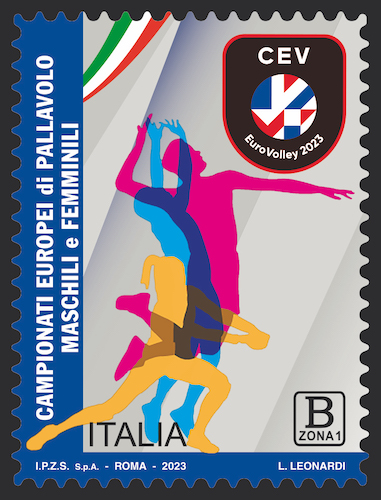 Poste Italiane comunica che è stato emesso dal Ministero delle Imprese e del Made in Italy un francobollo ordinario appartenente alla serie tematica “lo Sport”, dedicato ai Campionati europei di Pallavolo maschile e femminile, relativo al valore della tariffa B zona1 pari a 1,30€.