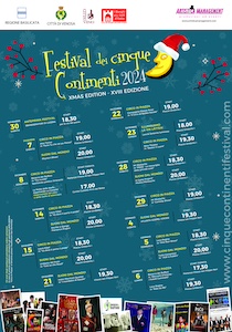 Il Festival dei Cinque Continenti, giunto alla diciottesima edizione e incluso tra gli eventi del patrimonio culturale intangibile della Regione Basilicata, prosegue fino al 6 gennaio 2025 con un programma che unisce spettacoli di vario genere, suddivisi in due sezioni tematiche. “Circo in Piazza” propone una serie di spettacoli di circo contemporaneo e di intrattenimento, spaziando tra clowneria, ventriloquismo, teatro dei piedi, teatro di figura, arti circensi, mimo e visual comedy. “Suoni dal Mondo!” presenta, invece, concerti che abbracciano diversi stili e culture, dal blues al flamenco, dalla musica manouche al gospel, in un dialogo musicale che attraversa i continenti.