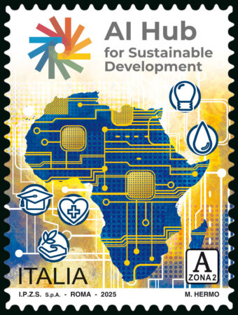 Poste Italiane comunica che oggi 20 giugno 2025 viene emesso dal Ministero delle Imprese e del Made in Italy un francobollo ordinario appartenente alla serie tematica “i valori sociali” dedicato al centro per l’intelligenza artificiale in Africa, relativo al valore della tariffa A zona 2 pari a 4,85€.