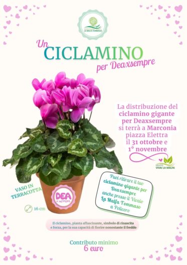 Con l’iniziativa “Un Ciclamino per Deaxsempre”, invitiamo tutti a unirvi a noi in questo gesto di solidarietà e amore.